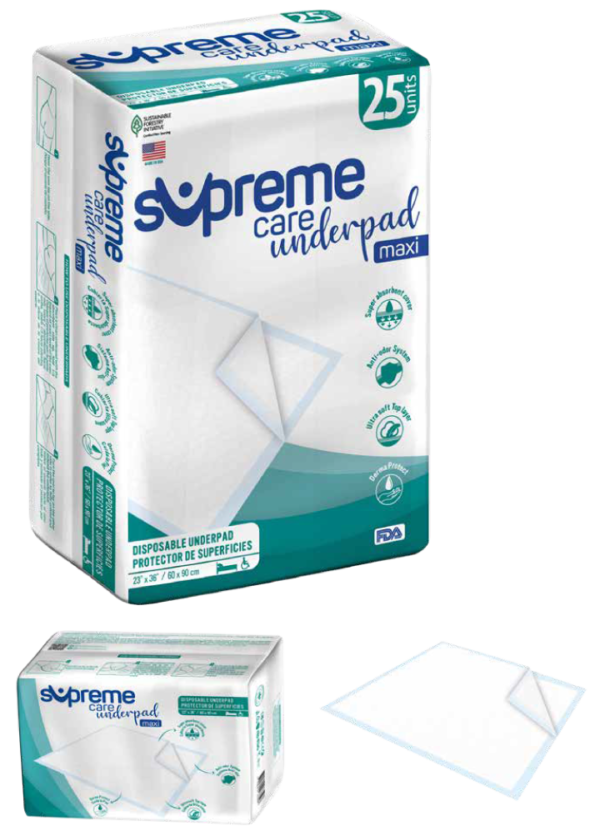 El Supreme Care Underpad Maxi es perfecto para su uso en el hogar, hospitales o centros de cuidado, ofreciendo una protección confiable para personas con incontinencia o para cualquier situación que requiera una capa adicional de absorción.